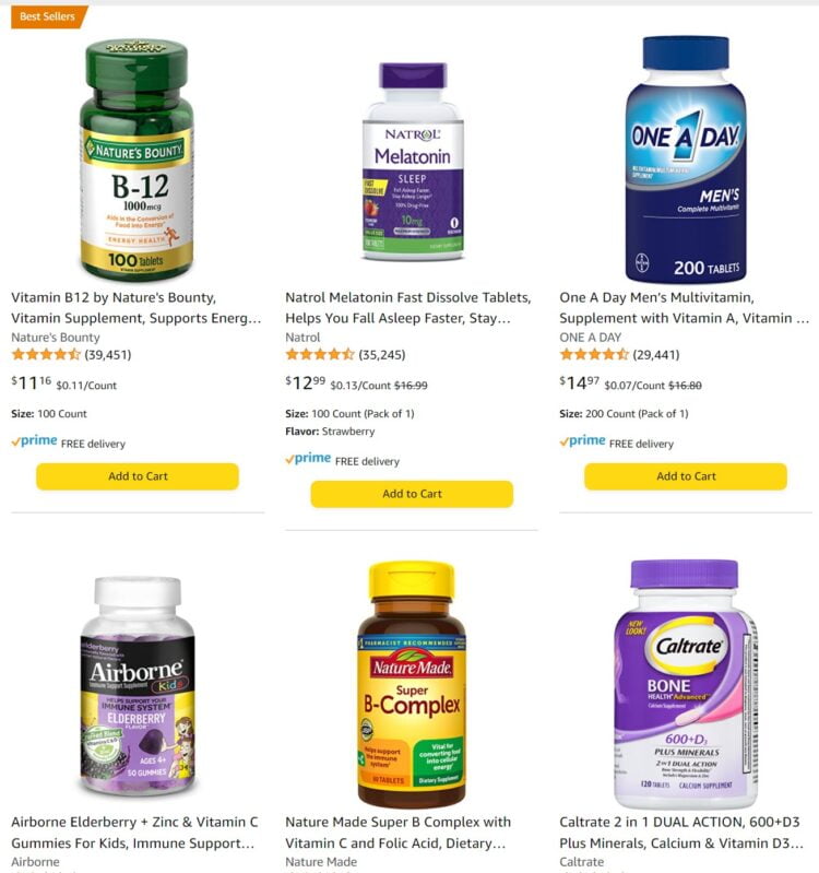 - Nature’s Bounty Vitamin B-12 (100 counts) 2 for $10.60
